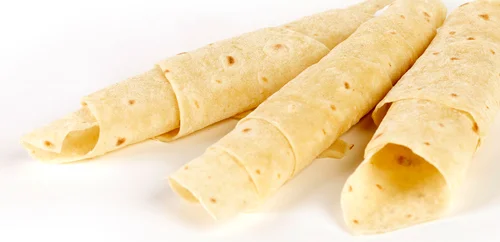 Butter the potato cakes with good butter, and add slices of smoked salmon and sour cream, roll and enjoy!
